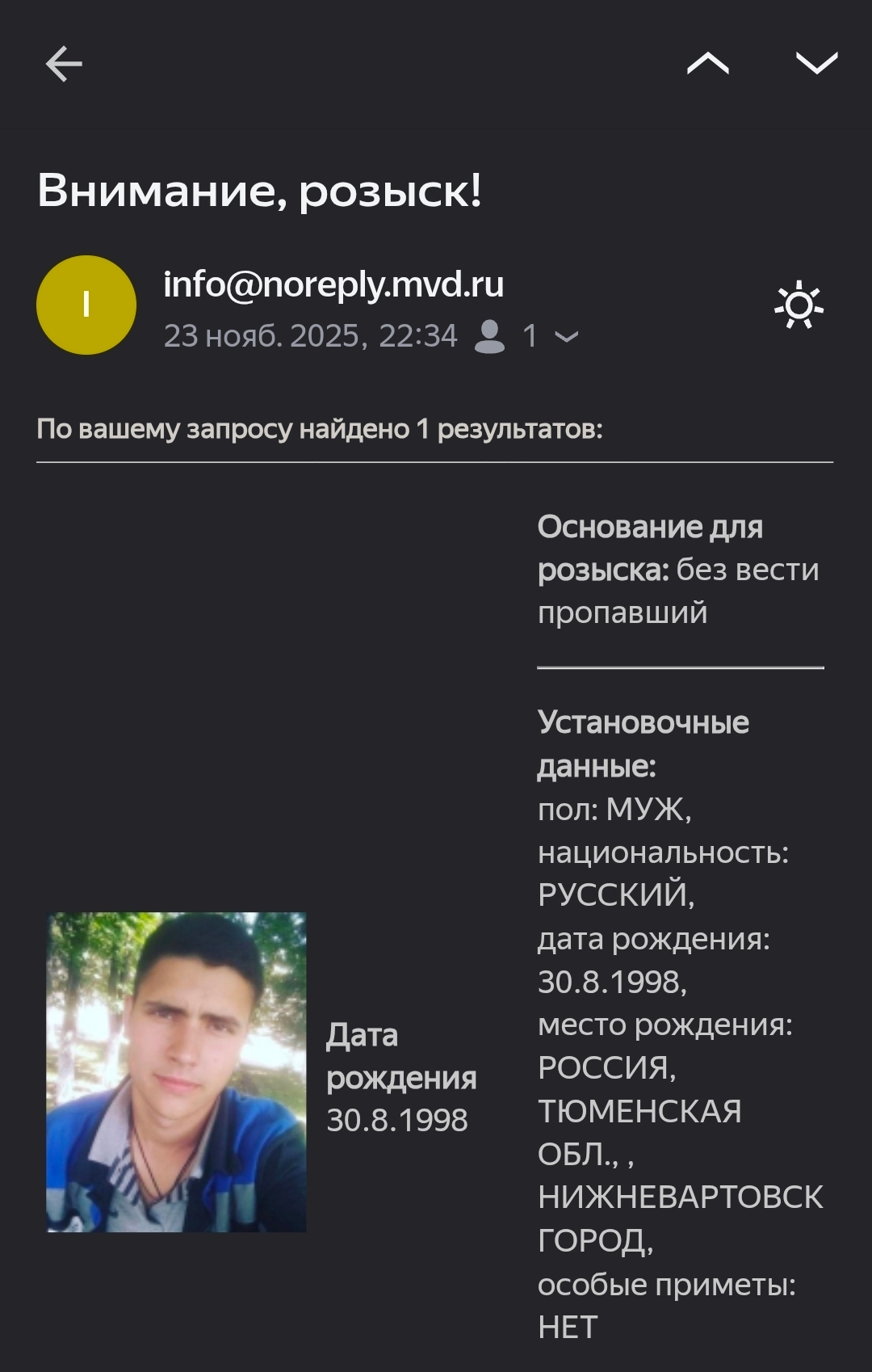 В 2025 году выяснилось, что Юрий всё ещё числится в списках личного состава войсковой части в Ростовской области. Винницкий направил жалобу в Военную прокуратуру южного военного округа, и там подтвердили, что документы по нему в часть не поступали. Мужчина отправил в часть заявление и пакет документов для отчисления, и это письмо было доставлено 31 октября. А в ноябре его задержали на посту ГИБДД — оказалось, Юрий в розыске как пропавший без вести.