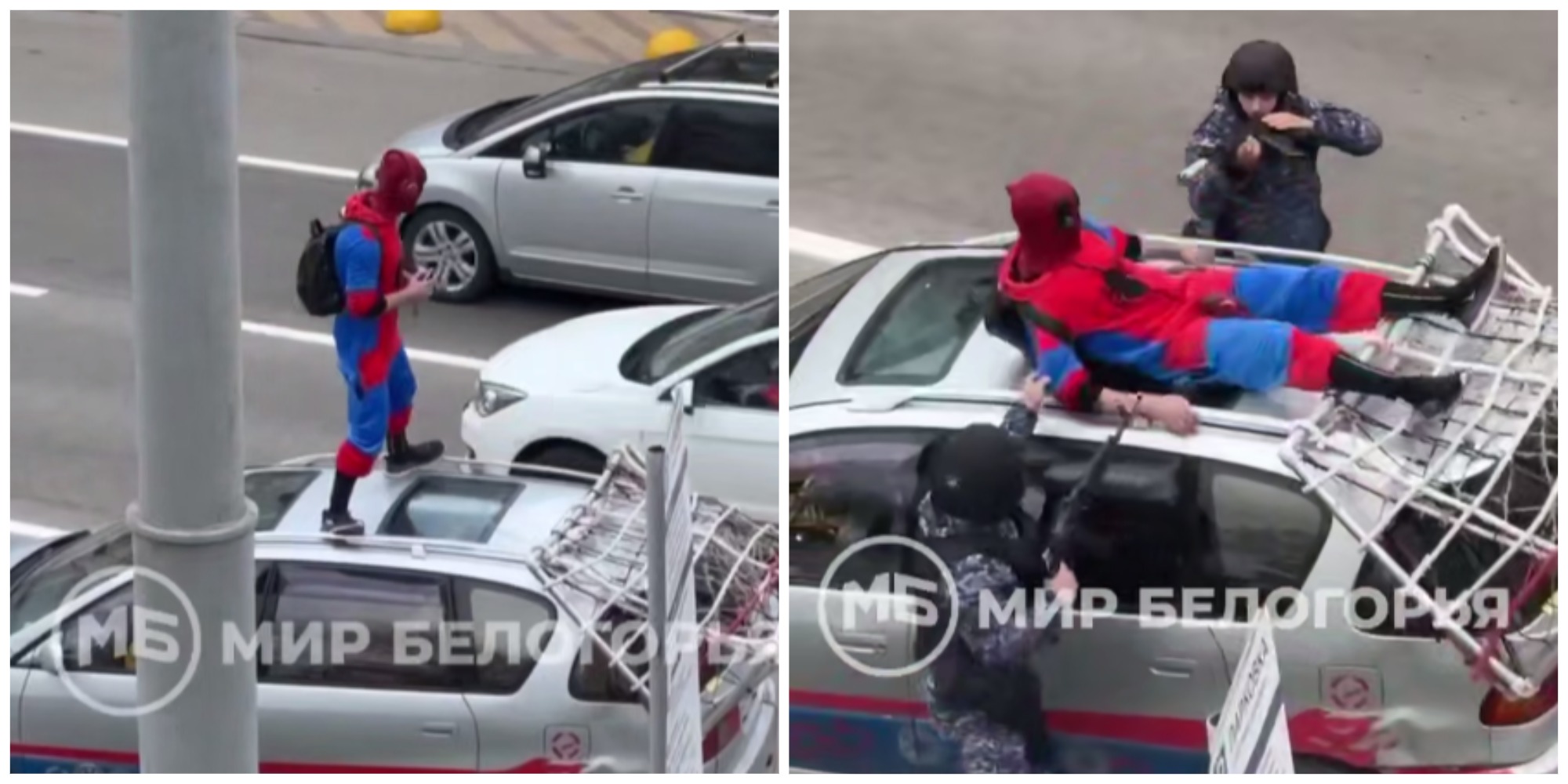 Сотрудники Росгвардии выехали по сигналу «Тревога» и застали необычную картину: 43-летний мужчина в костюме Человека-паука прыгал по крыше собственного автомобиля. В руках он держал предмет, очень похожий на пистолет. Позже выяснилось — это была обычная зажигалка, сообщили в УМВД по Белгороду.