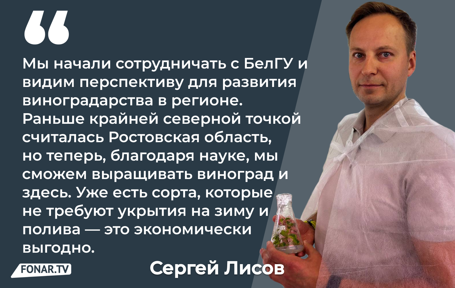В ботаническом саду Белгородского государственного университета журналистам показали уникальный проект — 5 тысяч саженцев винограда, выращенных методом клонального микроразмножения. Учёные уверены: благодаря этой технологии регион, который раньше считался «невиноградным», может стать центром виноделия.