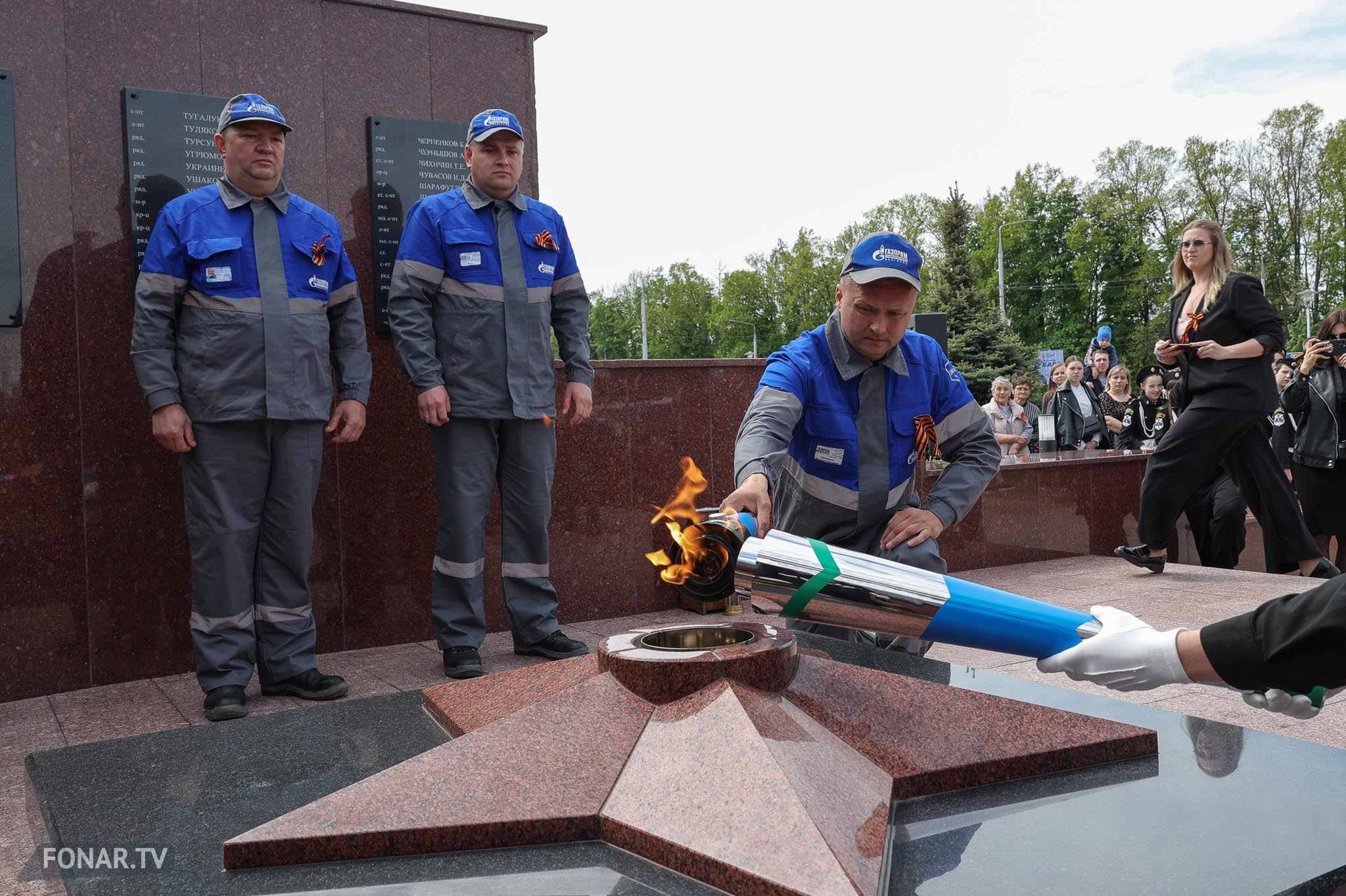 Огонь зажгли у мемориала «Павшим героям» на проспекте Богдана Хмельницкого.