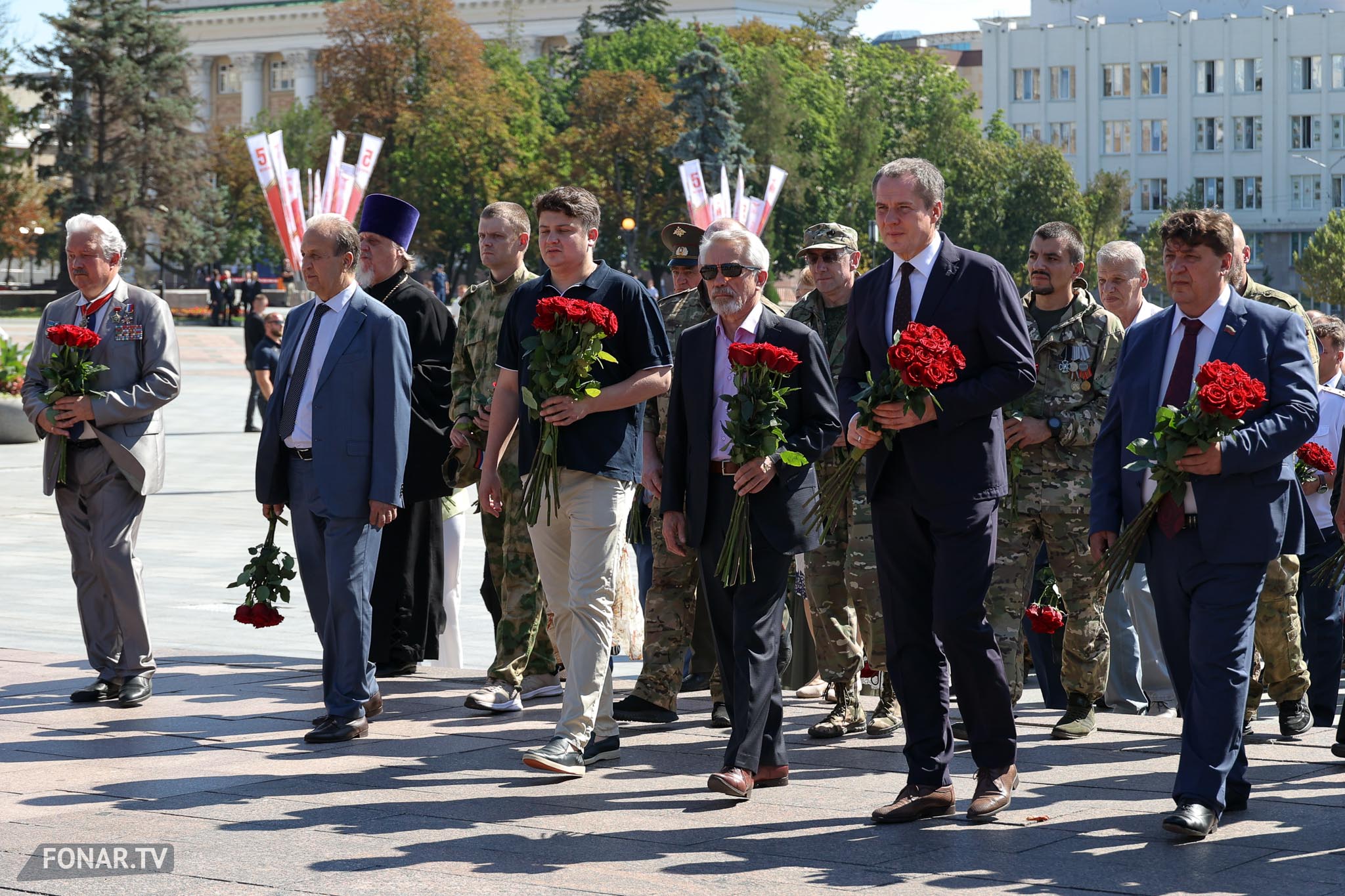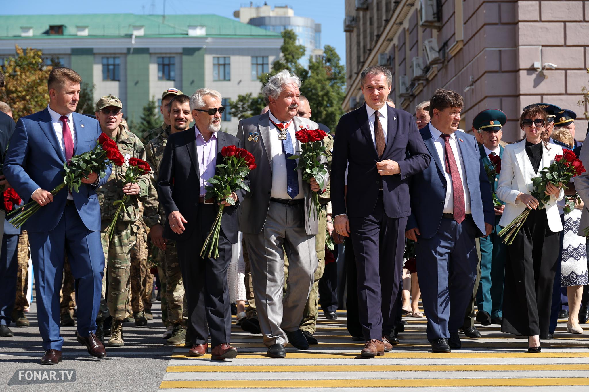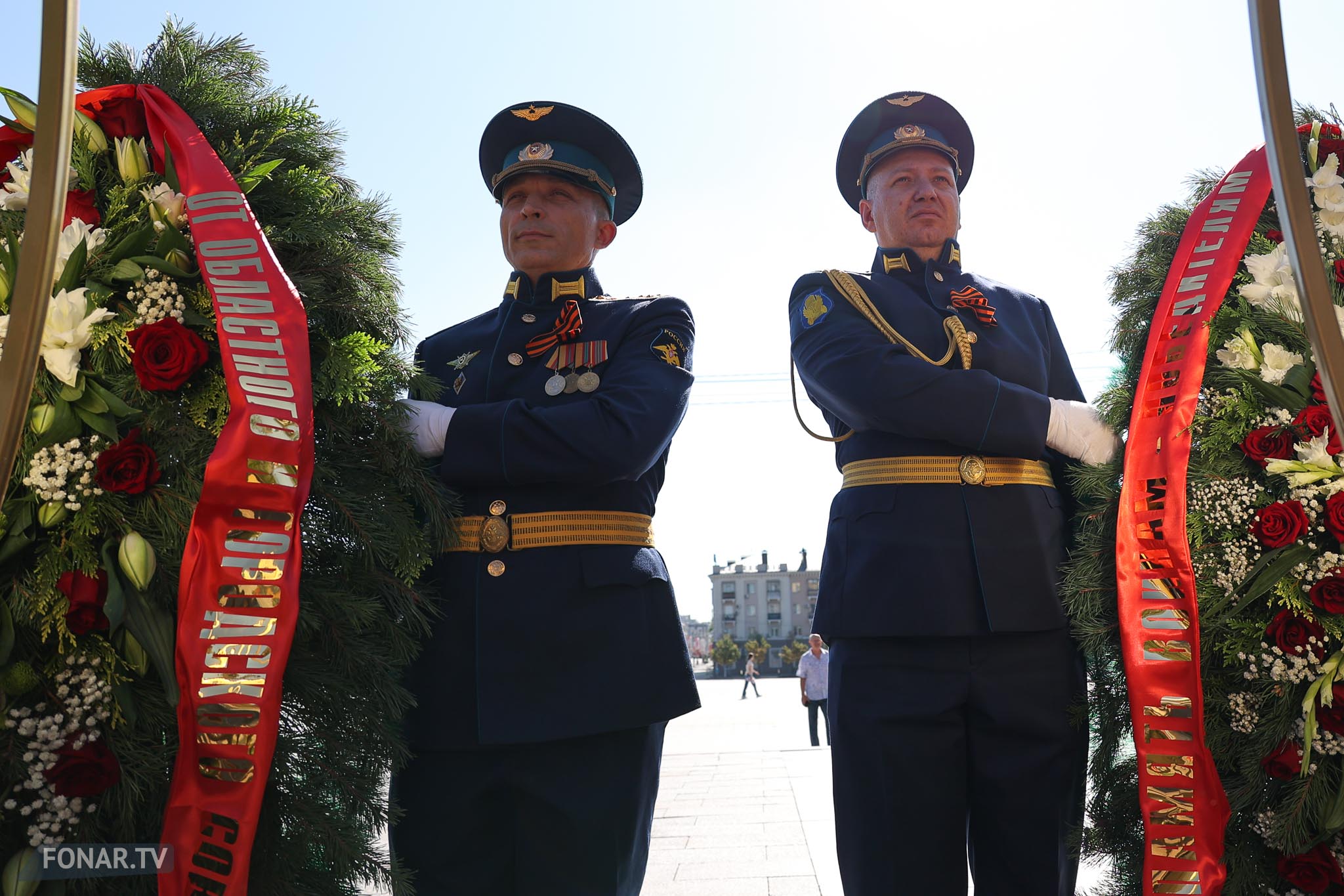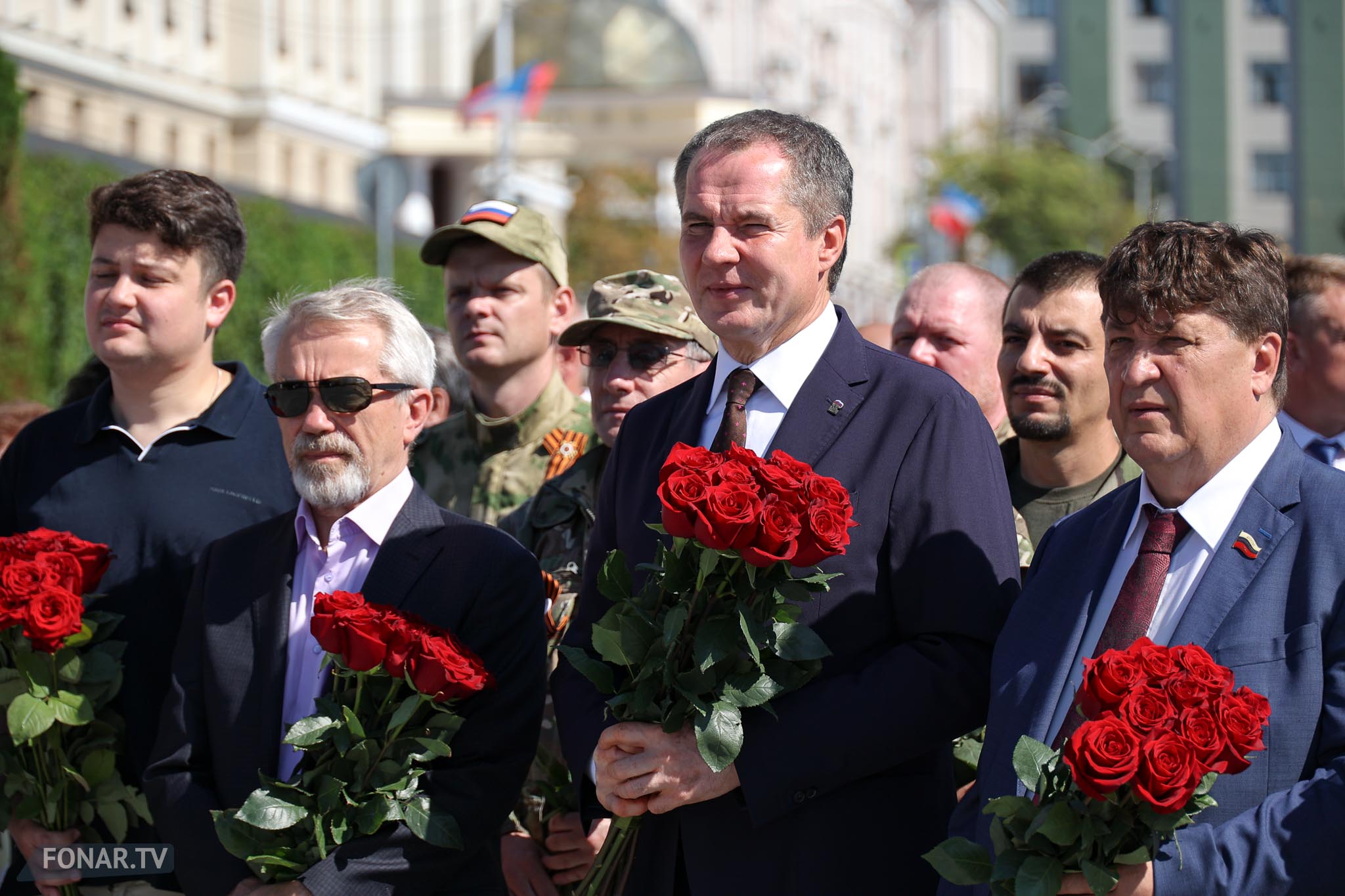 К акции присоединились губернатор Вячеслав Гладков, председатель областной Думы Юрий Клепиков, мэр Валентин Демидов. Также среди гостей был замечен и экс-губернатор Евгений Савченко. Участники возложили гвоздики и венки к мемориалу «Скорбящая мать» у Вечного огня.