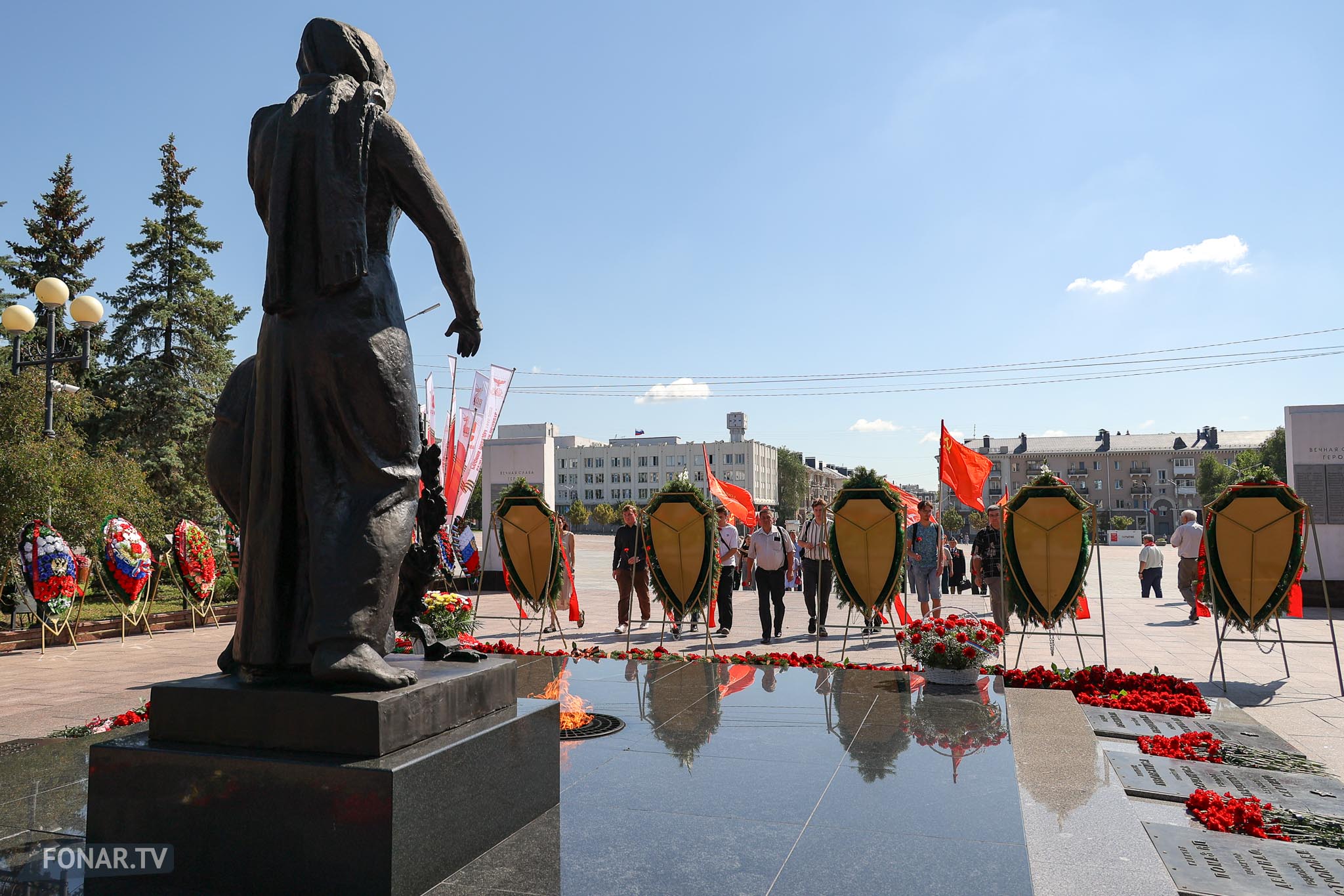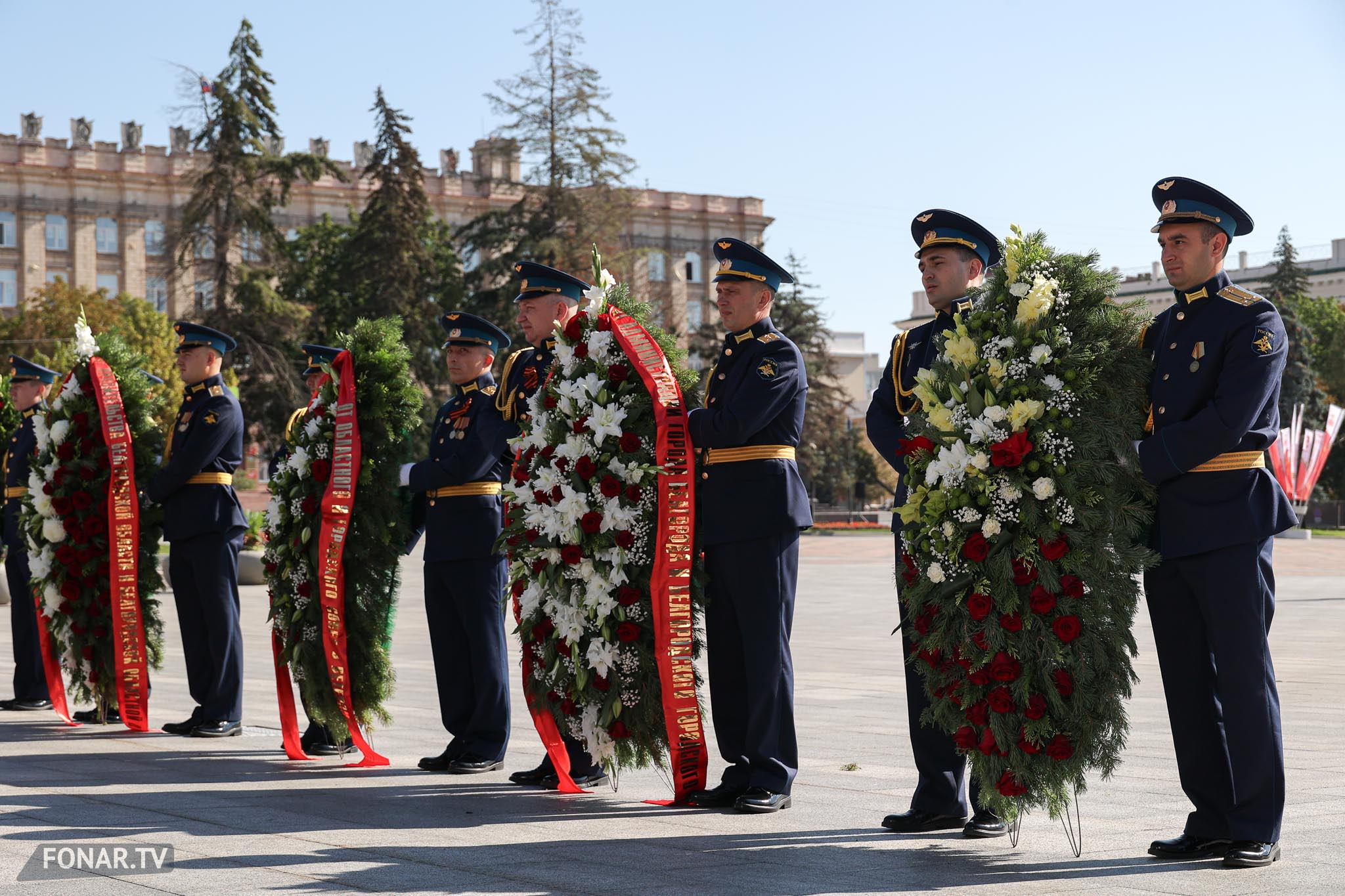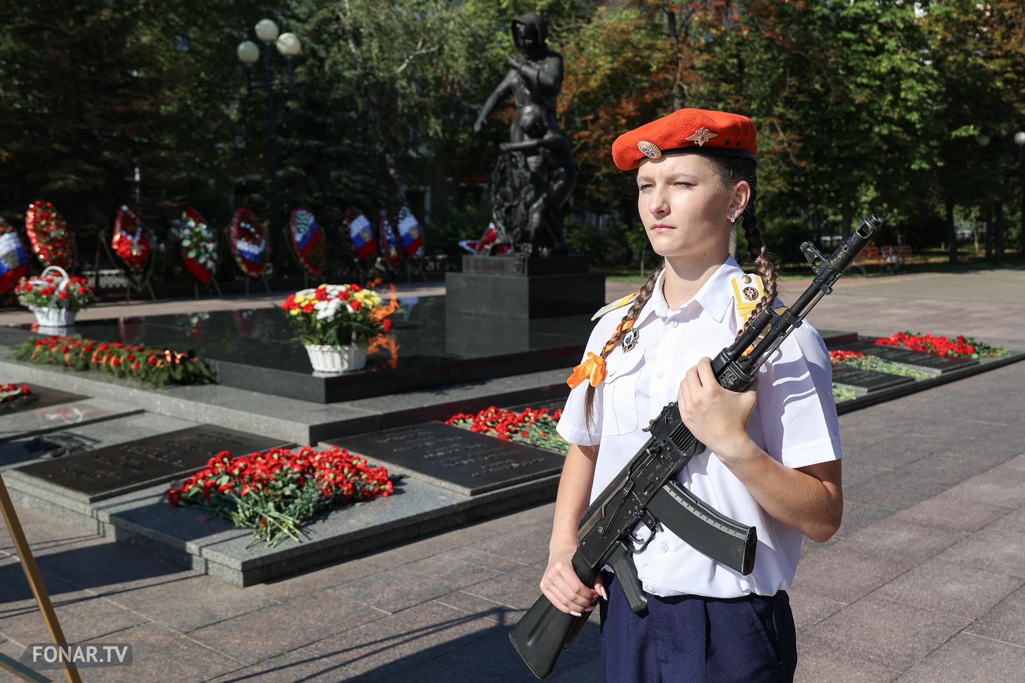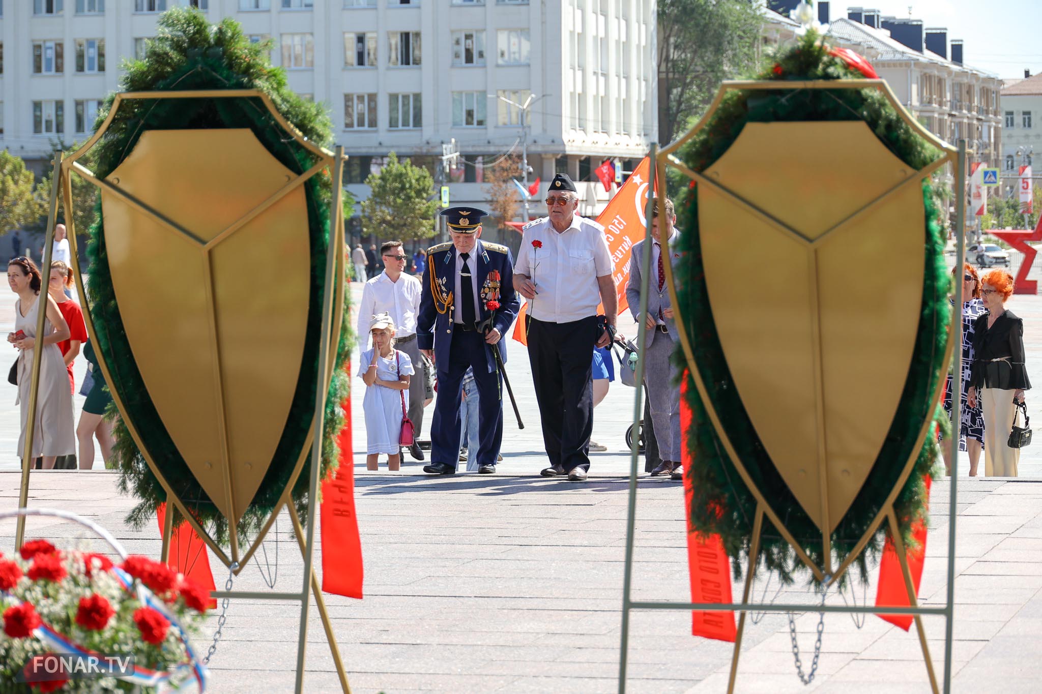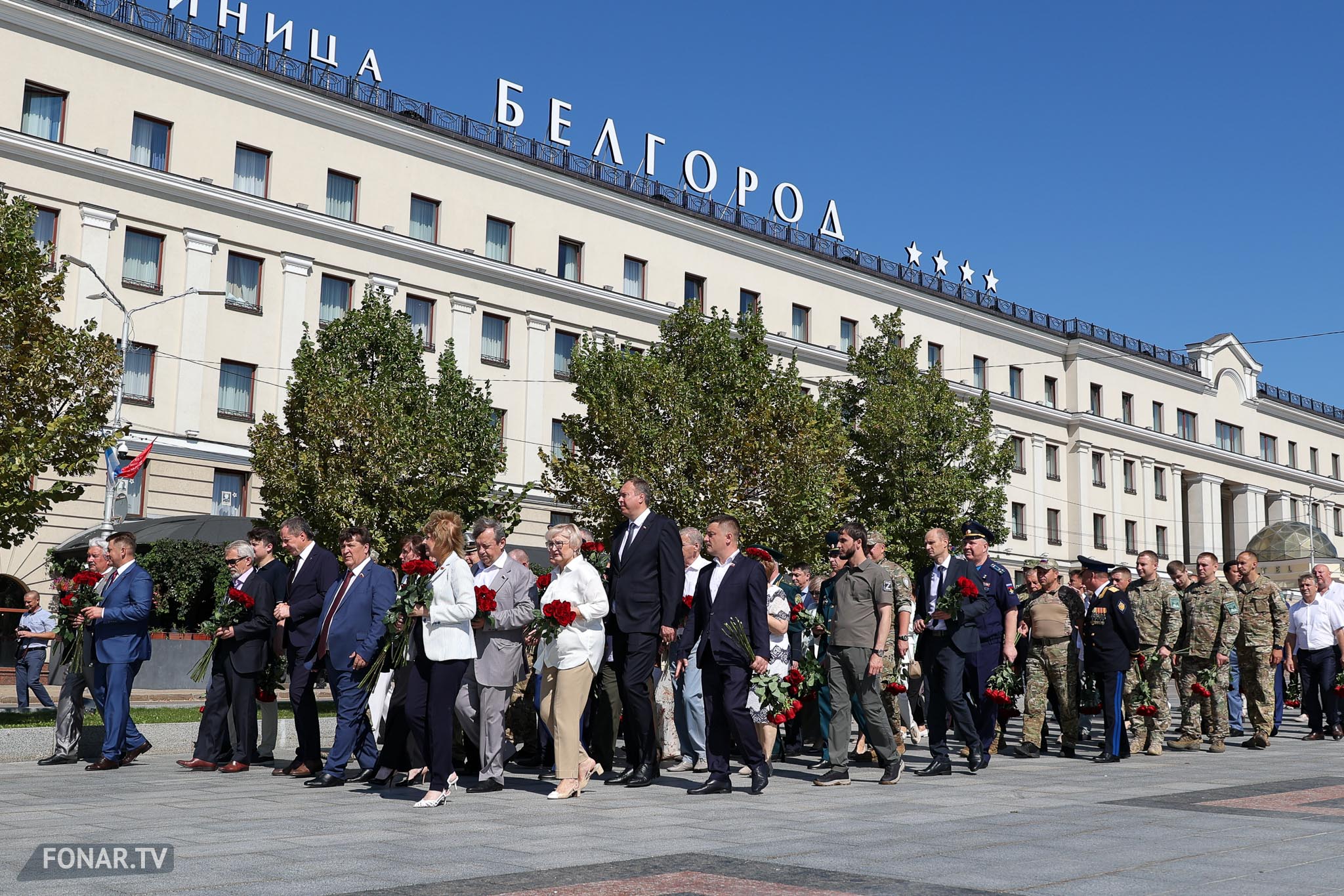 К акции присоединились губернатор Вячеслав Гладков, председатель областной Думы Юрий Клепиков, мэр Валентин Демидов. Также среди гостей был замечен и экс-губернатор Евгений Савченко. Участники возложили гвоздики и венки к мемориалу «Скорбящая мать» у Вечного огня.
