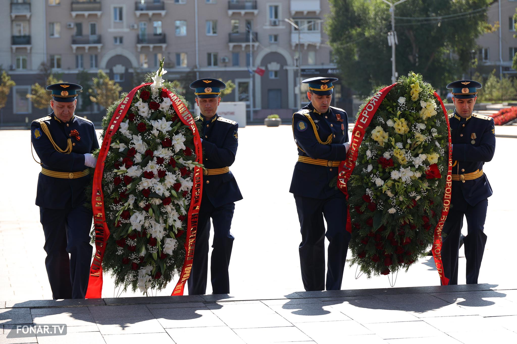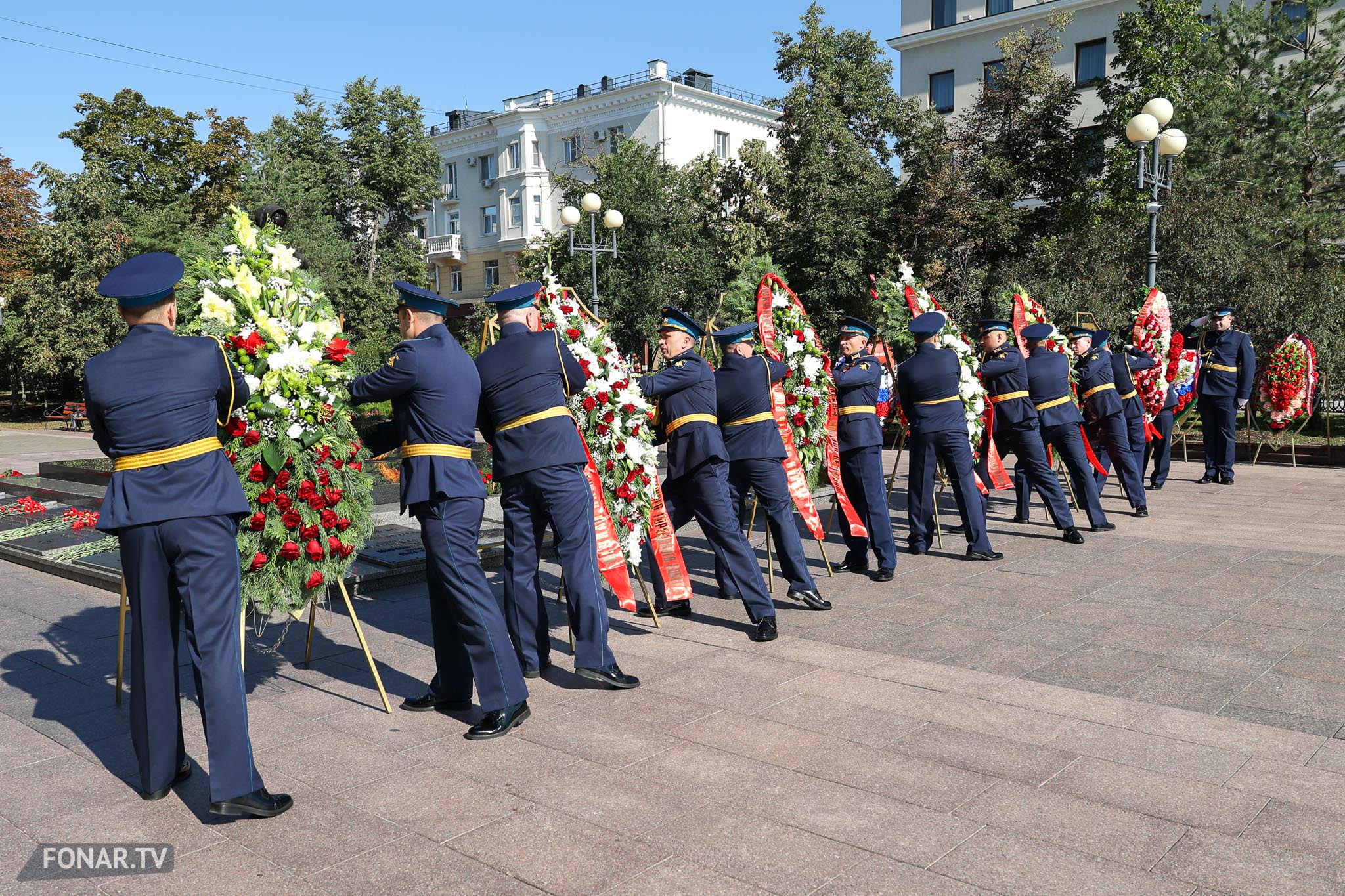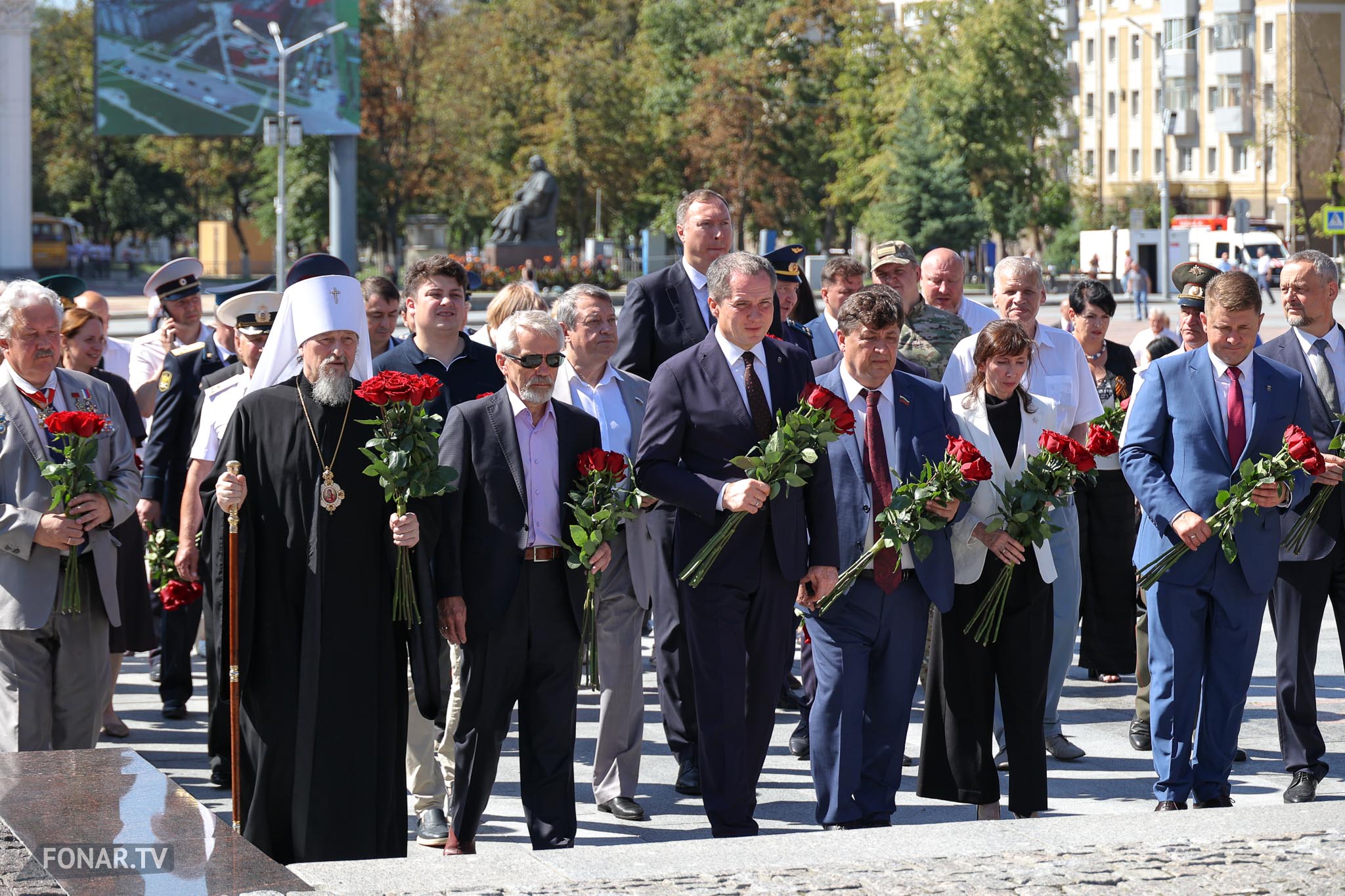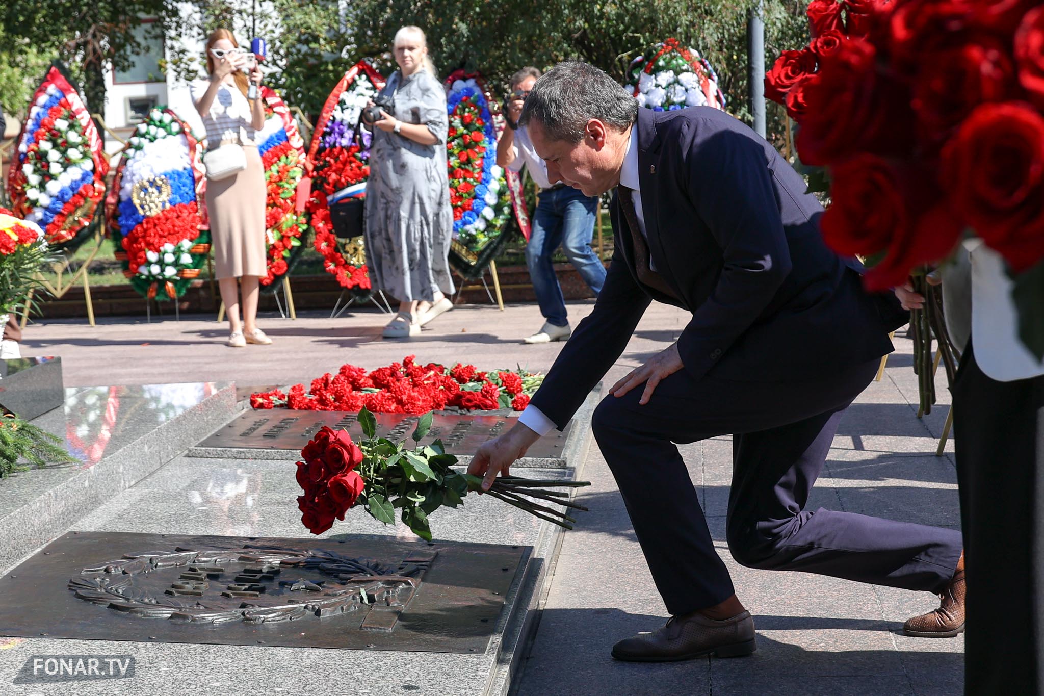 К акции присоединились губернатор Вячеслав Гладков, председатель областной Думы Юрий Клепиков, мэр Валентин Демидов. Также среди гостей был замечен и экс-губернатор Евгений Савченко. Участники возложили гвоздики и венки к мемориалу «Скорбящая мать» у Вечного огня.