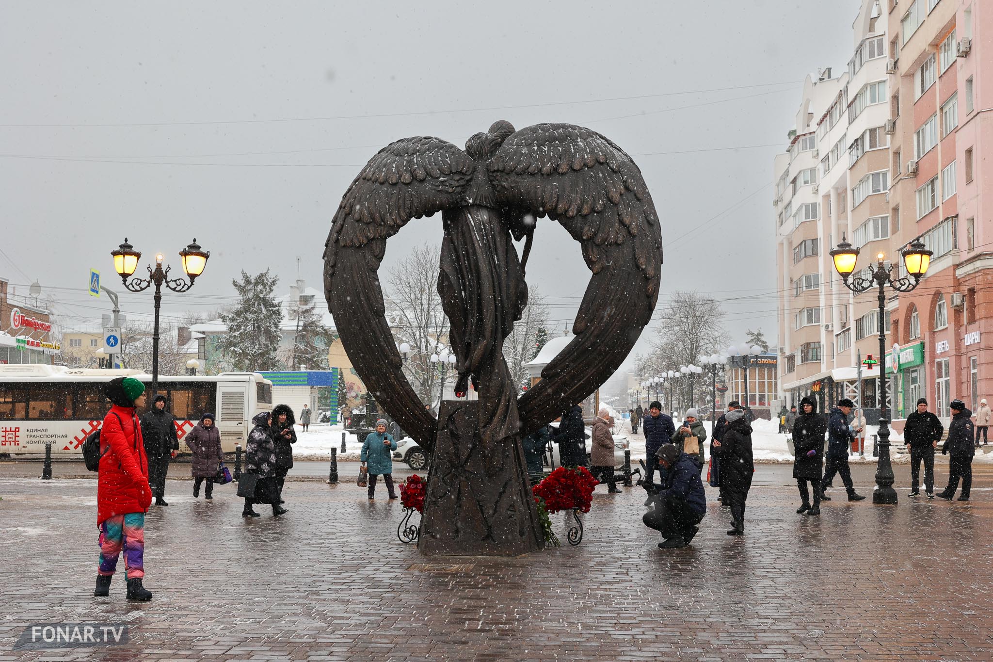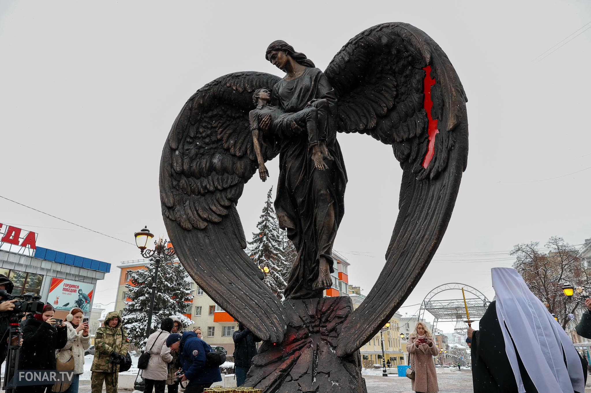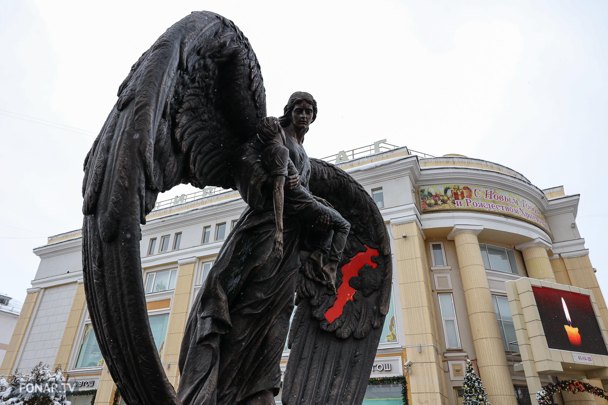 Ранее на этом месте находился стихийно созданный мемориал «Раненое сердце». Во время обстрелов 30 декабря 2023 года арт-объект был повреждён, и белгородцы стали нести к нему цветы и игрушки как символ памяти о погибших. Однако со временем стало понятно, что пластик, из которого сделан арт-объект, недолговечен, и мемориал может потерять презентабельный вид. Белгородские власти решили поставить на этом месте ангела с крыльями в форме сердца, скульптором которого стал Андрей Коробцов.