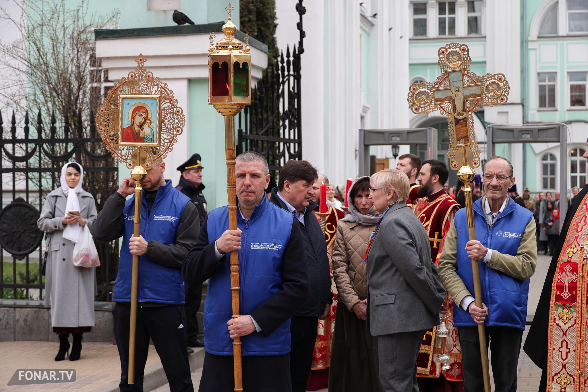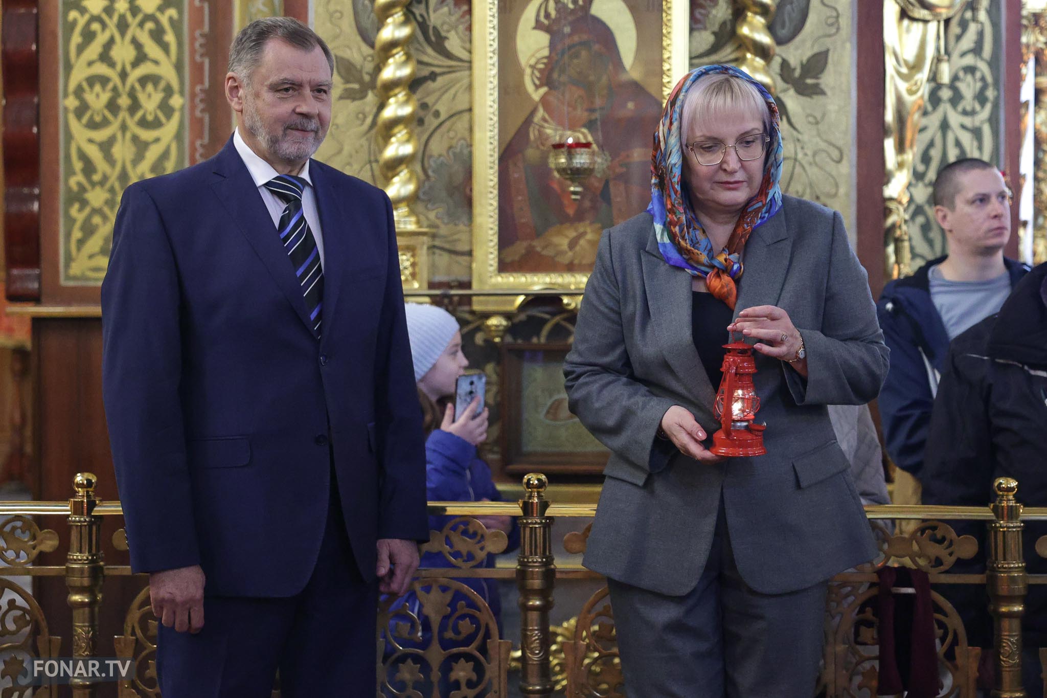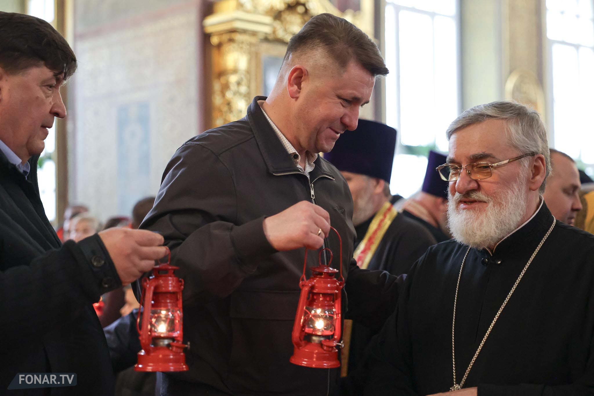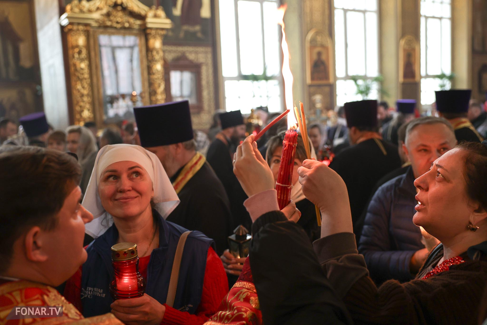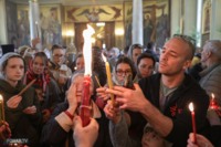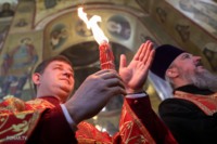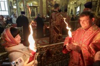 Накануне из России за благодатным огнём прибыла делегация Фонда Андрея Первозванного. Её возглавили председатель попечительского совета фонда Владимир Якунин и викарий патриарха Московского и всея Руси Кирилла митрополит Каширский Феогност (Гузиков). В состав также вошли другие видные деятели России.