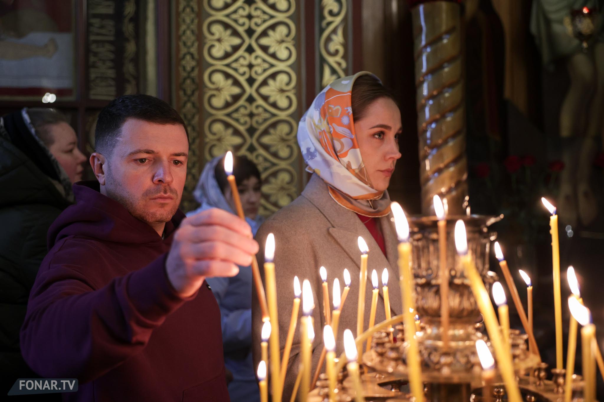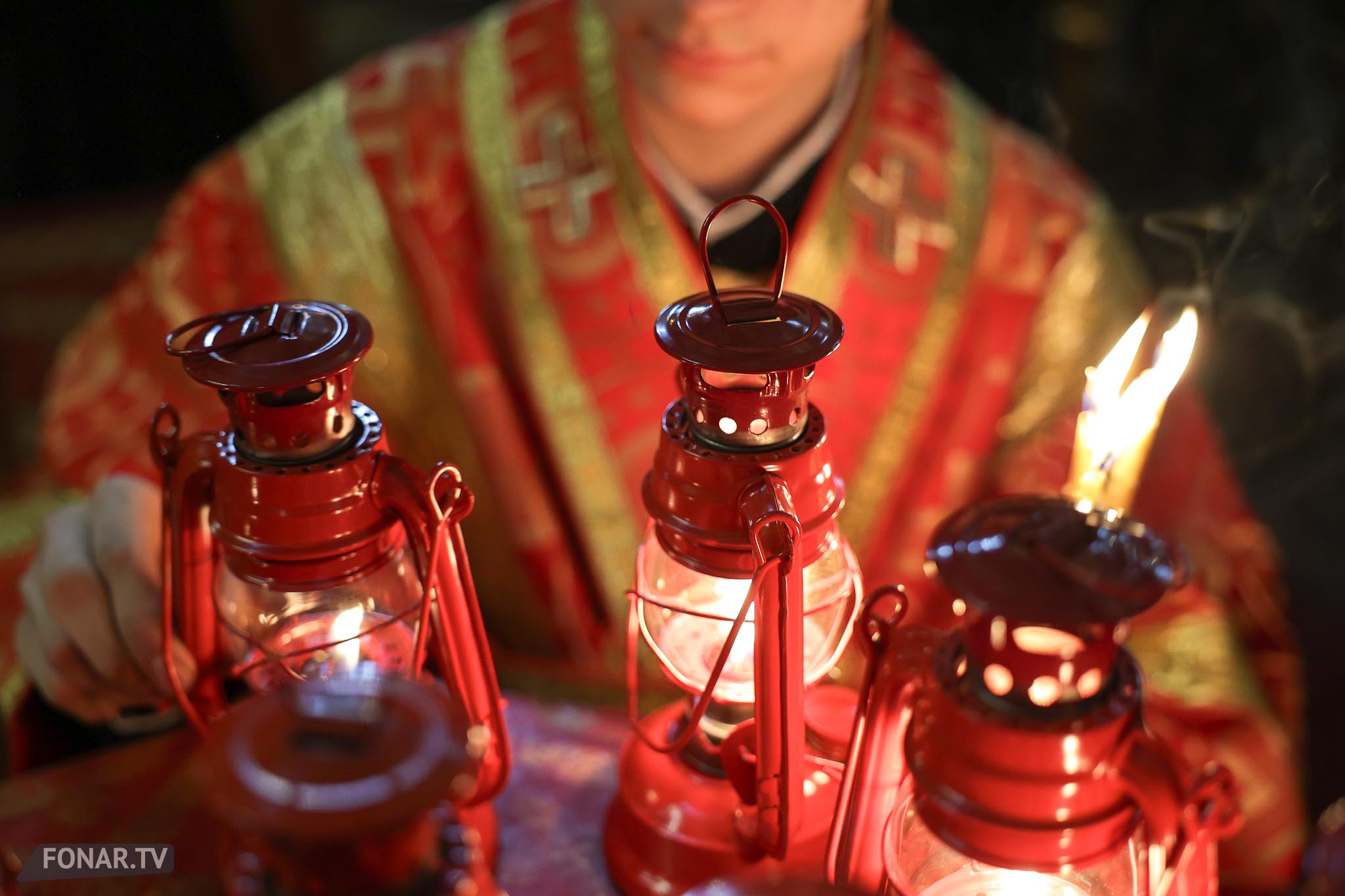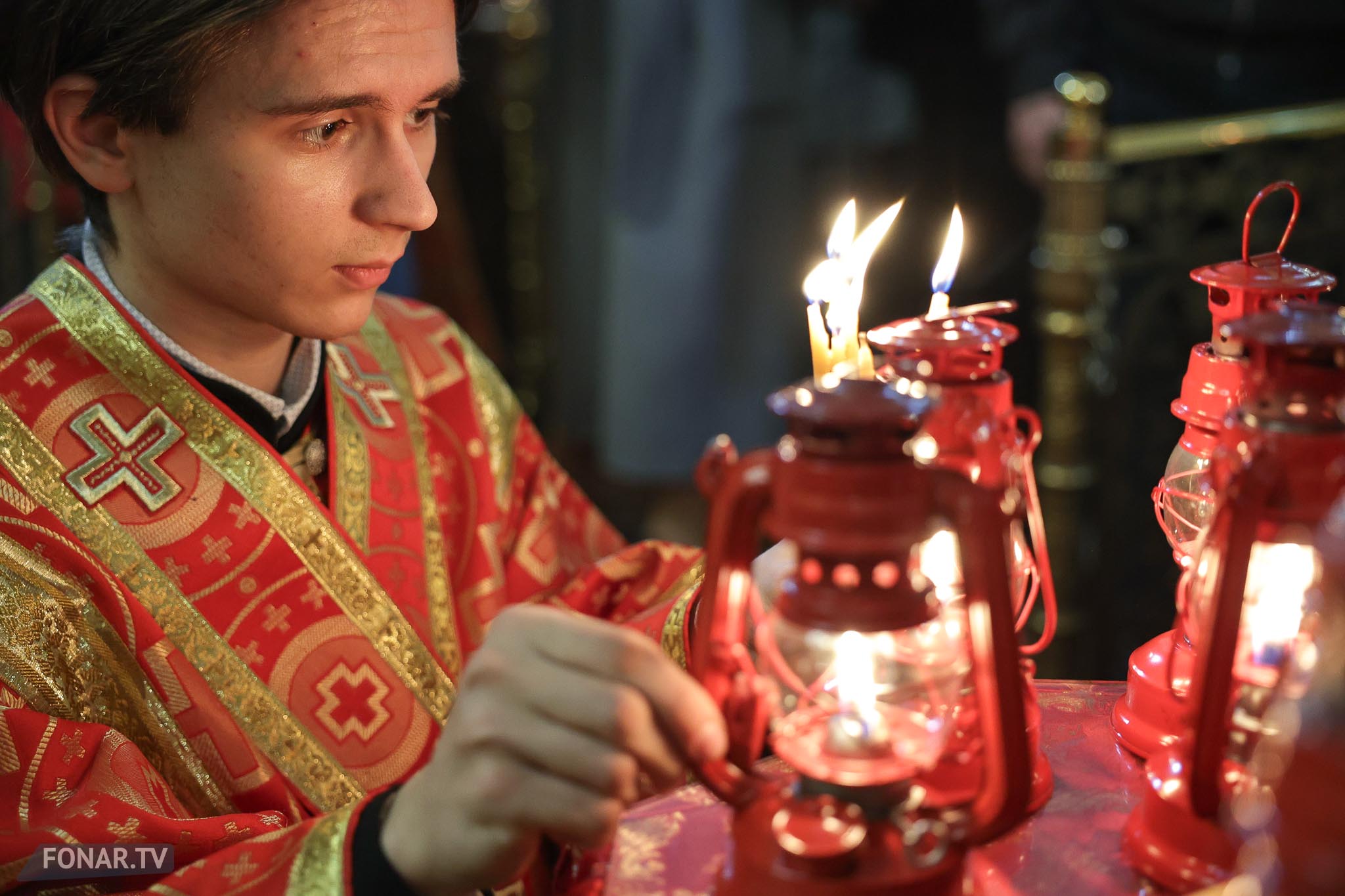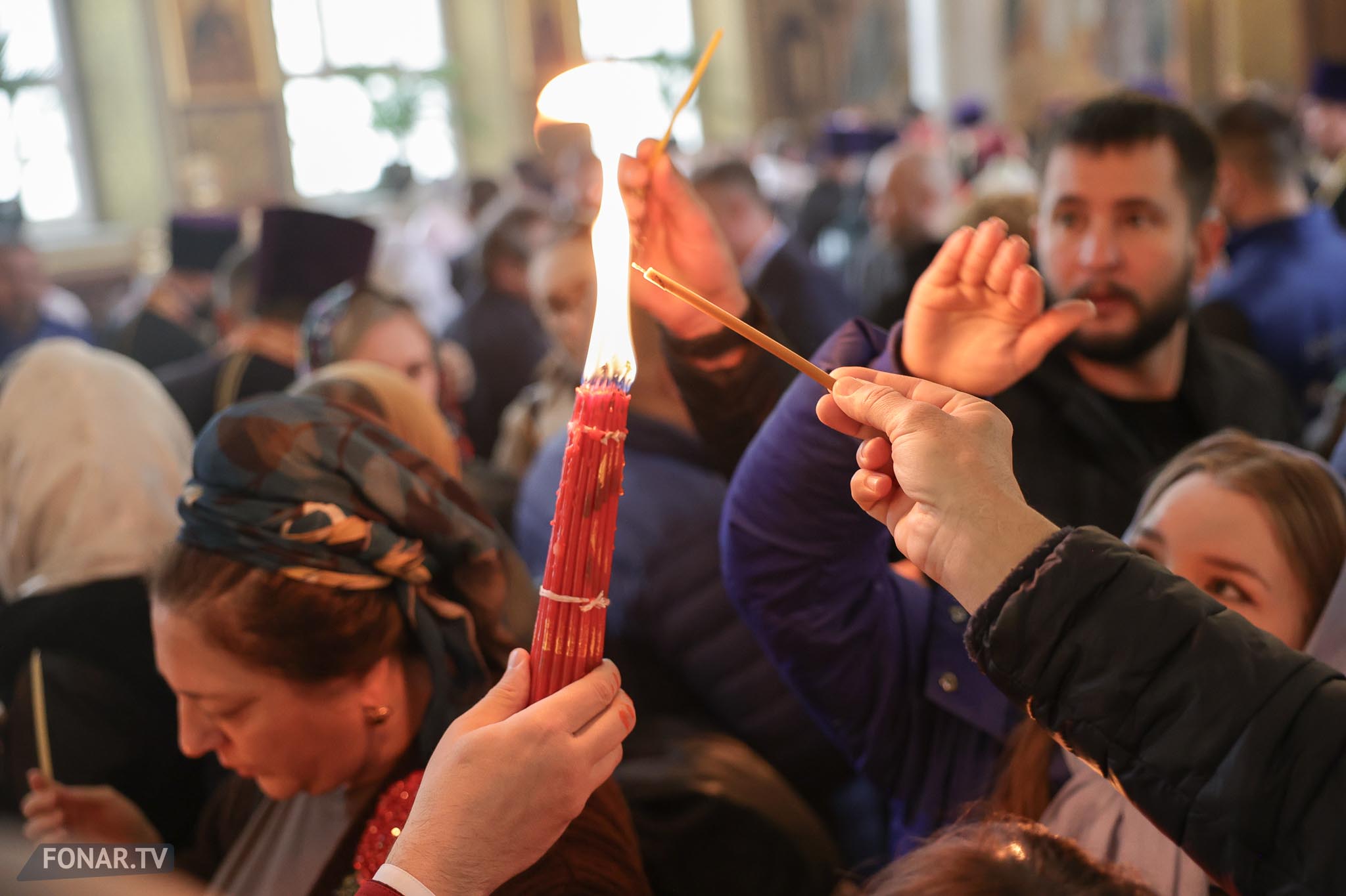 Накануне из России за благодатным огнём прибыла делегация Фонда Андрея Первозванного. Её возглавили председатель попечительского совета фонда Владимир Якунин и викарий патриарха Московского и всея Руси Кирилла митрополит Каширский Феогност (Гузиков). В состав также вошли другие видные деятели России.
