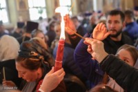 Благодатный огонь сошёл в храме Гроба Господня в Иерусалиме в субботу, 11 апреля. Как сообщает РИА Новости, от момента, когда патриарх Иерусалимский Феофил III вошёл Кувуклию до появления Благодатного огня прошло около пяти минут, это произошло с 14:08 до 14:13 по московскому времени.