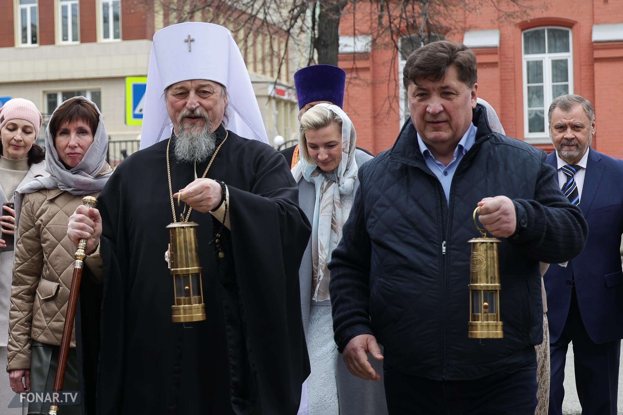 Святыню традиционно привезли и в Белгород, в Преображенский кафедральный собор, где её встретили священнослужители и прихожане. Огонь доставили уполномоченные по правам человека и детей Жанна Киреева и Галина Пятых, а также телеведущий Виталий Стариков. Из Преображенского собора огонь разошёлся по храмам региона.